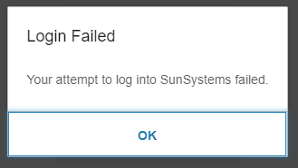 The operator is already logged in. Your attempt to login into SunSystems failed.