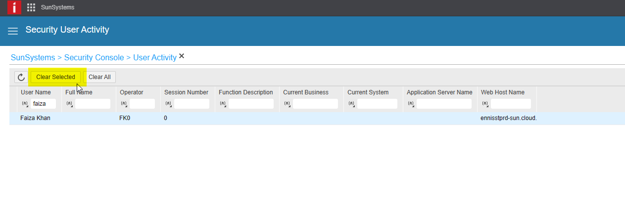 2. Search and select the user with the issue and click on clear selected